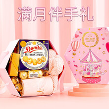 宝宝满月礼盒回礼喜饼喜蛋礼盒诞生周岁生日百日宴伴手礼喜糖酒男女宝宝 男宝 蓝色6角礼盒 D套餐