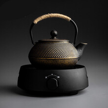 罐罐茶炉甘肃 禾阳日式铁壶铸铁泡茶壶电陶炉煮茶器煮水烧茶烧水壶家用茶道套装 铁壶-编钟+电陶炉磨砂黑