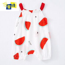 雾绡品牌肚兜童装夏季新品婴儿肚兜夏天纯棉吊带护肚脐衣服夏天女宝宝无袖连体衣薄款G01 西瓜 90cm(90码(9-15月))