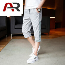 AR品牌男装高端品质中青年短裤男士夏季七分裤男休闲薄款潮牌韩版短裤直筒宽松系带运动7分中裤F1 162银灰色 4XL