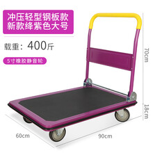 平板车拖车折叠拉货车搬运车四轮便携车搬家小推车商场拖货车 紫色豪华升级轮静音宽60*长90 材质铁板