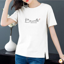 琴虞 短袖T恤女2021年夏季新款大码胖mm大码女装圆领印花韩版百搭简约宽松减齡纯棉女汗衫 白色 XL 【建议115斤-130斤】