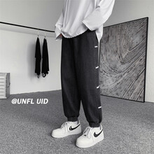 牛仔裤男秋季ins港风裤子宽松潮流痞帅阔腿裤2021新款束脚裤 深灰色 M