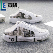 零略(LINGLUE)品牌休闲鞋男2021年夏季新款韩版潮流一脚蹬透气外穿小白鞋男士踩脚板鞋 Q01黑色 39