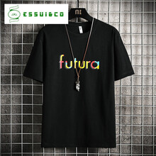 短袖T恤男宽松棉刺绣T恤2021新款印花男士圆领半袖夏季打底衫半截袖上衣 黑色 4XL