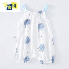 雾绡品牌肚兜童装夏季新品婴儿肚兜夏天纯棉吊带护肚脐衣服夏天女宝宝无袖连体衣薄款G01 蓝大象 66cm(66码 (3-4月))