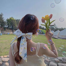沙巾水果绑头发丝巾女百搭气质网红绑发发带小清新扎头发丝带超仙飘带 夏日枇杷