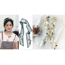 夏天丝巾细窄长条丝巾长款薄飘带夏季水果百搭领巾女士头饰方巾发带铭佳玲新品 2件:浅蓝桃花+枇杷