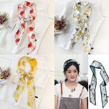 夏天丝巾细窄长条丝巾长款薄飘带夏季水果百搭领巾女士头饰方巾发带铭佳玲新品 4件:石榴+枇杷+榴莲+浅蓝桃花