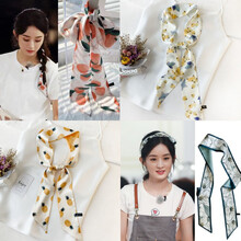 夏天丝巾细窄长条丝巾长款薄飘带夏季水果百搭领巾女士头饰方巾发带铭佳玲新品 4件:红橙+枇杷+菠萝+浅蓝桃花