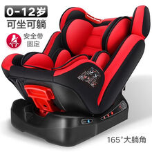 儿童安全座椅汽车用婴儿宝宝便携式0-12岁车载新生儿可坐可躺可睡 美琪熊安全带固定睡躺款/红色