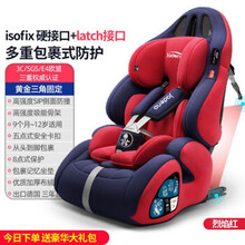 儿童安全座椅汽车用简易便携式宝宝车载婴儿0-12岁通用3可坐可躺 烈焰红-ISO硬接口+LATCH接口