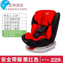 【】儿童安座椅汽车用0-4-3-12岁宝宝婴儿车载便携式360度旋转坐椅 安全带黑红-双向安装-坐躺可调