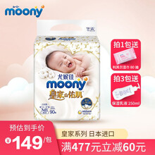 京东国际 尤妮佳moony纸尿裤 日本进口 皇家系列纸尿裤 超薄透气男女通用婴儿尿不湿 尤妮佳纸尿裤 纸尿裤NB号90片 单包到手价149,买即送婴儿湿巾,3组起即送润肤乳(赠完即止),正品保障售后无忧