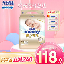 尤妮佳moony极上通气系列极光薄纸尿裤拉拉裤新生儿尿不湿男女宝宝通用 【纸尿裤】极上NB86片(新生儿5kg以下)