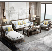 芬梵 新中式实木沙发茶几组合客厅可拆洗布艺沙发大小户型整装家具定制 预付款/定制(拍前咨询) 组合