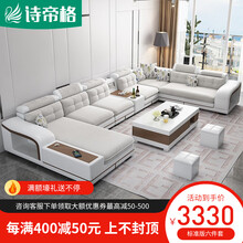 布艺沙发组合大户型科技布U型贵妃实木框架现代简约客厅家具 标准版【落叶松框架/海绵座包】绒布 三人位+脚踏【颜色礼品联系客服】