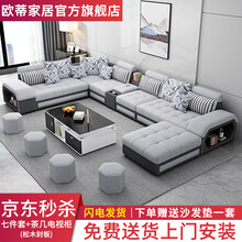 欧蒂家居 沙发 布艺沙发床可拆洗现代简约实木组合懒人沙发客厅整装大小户型家具 亲肤棉麻布【高雅灰】 七件套【配茶几电视柜+4个凳子】