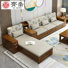 齐乔 实木沙发 中式组合现代简约小户型储物转角布艺沙发套装客厅家具961 储物款 单人位