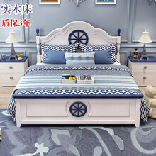 童友 儿童床男孩单人床1.5米 美式实木床高箱床 1.35M单层床儿童床女孩公主床 王子床 青少年床 实木床 1350*2000
