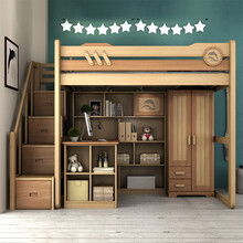 格杰 全实木儿童高低床上下床上床下桌多功能组合高架床带书桌衣柜成人 多功能床+梯柜(带桌) 上铺1000*1900mm