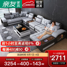 亲友 北欧布艺沙发组合客厅整装家具大小户型纳米科技布乳胶简约可拆洗实木框架沙发 六件套【配4个布凳】 旗舰海绵座包【颜色备注】