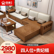 丽巢 沙发 实木沙发冬夏两用沙发客厅家具实木布艺沙发组合中式储物沙发27# 27储物 四人位+贵妃榻(科技布) 沙发