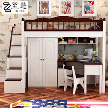 高低床带书桌衣柜护栏简约儿童床上下床男孩高架床省空间上床下桌成人实木支柱多功能组合 咖色床架+1.1书桌+0.8衣柜+梯柜(不带椅) 1000*1900