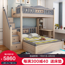 格杰 儿童床交错式上下床高低床带书桌1.2米上下铺1.5米成人实木柱子母床多功能组合床 上铺+1.5米储物床+书桌+梯柜 上铺1200*1900mm