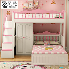 至慧家具 儿童床高低床交错式上下床带书桌衣柜粉色多功能一体组合床成人双层床女孩实木支柱 粉色床架+1.2高箱下床+0.6衣柜+梯柜 1200*1900