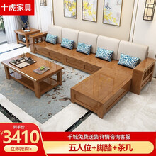 十虎 新中式现代实木沙发冬夏两用小户型布艺简约客厅储物组合家具 五人位+脚踏+茶几