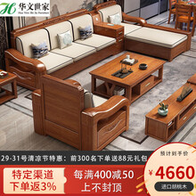 华文世家 沙发 实木客厅沙发整装现代新中式胡桃木沙发1+2+3组合贵妃转角客厅家具 四人位+贵妃榻+茶几+中箱