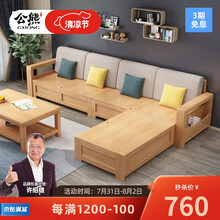 公熊家具 沙发 实木沙发客厅布艺沙发床冬夏两用储物整装家具套装组合 原木色 四人位+脚踏