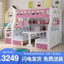 香可 全实木儿童床上床下桌子母床上床下桌床男孩女孩双层床上下铺床成人床母子床多功能高低床 粉白梯柜 上铺1000下铺1200