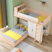 米林纳 小户型多功能组合成人上下床高低床1米5带书桌衣柜一体子母床双层床儿童床 A款 侧边书桌+双衣柜+上铺床头柜+1.2米组合床