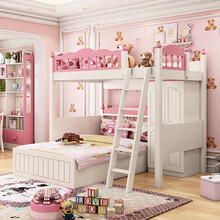 糖果屋儿童高低床上下床带书桌衣柜粉色多功能一体组合床成人双层床女孩 上铺+1.2米储物高箱下床+0.6米衣柜+挂梯 上铺1.2x1.9米