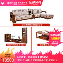 青岛一木 全实木沙发 金丝胡桃木沙发 转角沙发L形现代 新中式沙发组合 客厅沙发 实木客厅家具 沙发全套(带中间柜)+电视柜全套组合+茶几