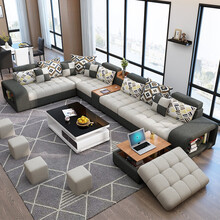 锐骏 沙发大户型组合布艺沙发现代简约客厅家具 【乳胶款】7件套(普通脚踏)+茶几电视柜