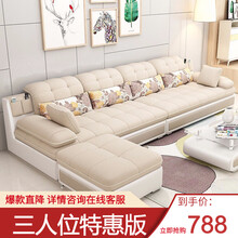 雅金居 新款可拆洗布艺沙发组合三人位小户型沙发现代简约客厅家具布沙发 海绵版 四人位+脚踏3m【配套茶几电视柜】