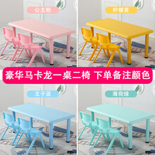 幼儿园桌椅托管早教成套塑料桌长方形儿童学习写字桌培训班课桌椅 豪华马卡龙1桌2椅