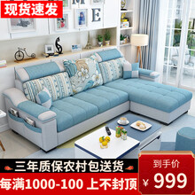 佳梵图 简约现代布艺沙发小户型客厅家具整装组合可拆洗转角三人位客厅沙发 棉麻布海绵版(颜色备注客服) 三人位+脚踏+黑白茶几