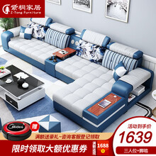 沙发科技布艺沙发贵妃转角组合现代简约懒人沙发客厅小户型多功能实木架双人休闲皮布组合沙发套装家具 海绵款(颜色请留言) 【店长推荐组合】...