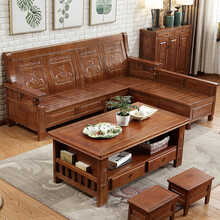 木拟 实木沙发 香樟木沙发 现代新中式简约转角贵妃7字型整装小户型雕花家具1+2+3榫卯结构 单人位