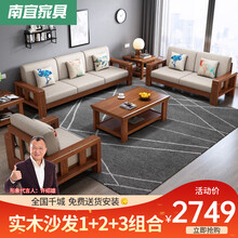 南宜(nanyi) 沙发实木沙发小户型整套装单人三人双人现代中式现代客厅转角贵妃款拉床组合客厅家具 1+2+3组合 海绵坐垫【胡桃色】
