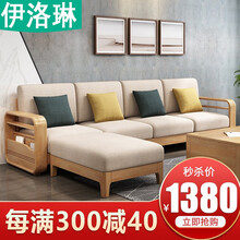 伊洛琳 北欧实木沙发组合贵妃转角新中式沙发现代简约客厅中小户型布艺沙发家具 单人位(颜色备注)