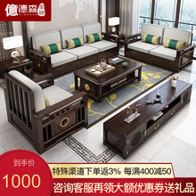 亿德森 新中式实木沙发储物冬夏两用茶几组合可拆洗轻奢家具客厅布艺大小户型 茶几