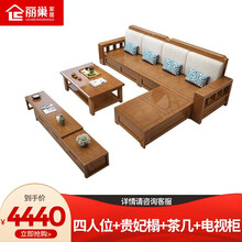 丽巢 实木沙发组合现代中式简约储物木布艺沙发经济型客厅夏冬两用家具 27# 四人位+贵妃榻+茶几+电视柜(高靠款)