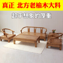小隐诚品 老榆木沙发茶几套装 新中式古典三人位单人位韩式仿古全实木原木榫卯结构 简约客厅组合 定金 单人+三人+单人+茶几+角几 五件套