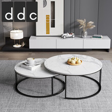 DDC意式茶几电视柜大小圆组合北欧简易大小户型可伸缩电视柜成套整装客厅家具 大小圆茶几组合-黑色脚