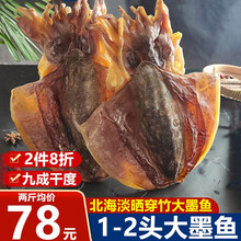 鱼臻多 1-2头大号墨鱼干干货大号目鱼干乌贼干淡干海产品孕妇煲汤500克穿竹大墨鱼 【1-2头】淡干大墨鱼500g